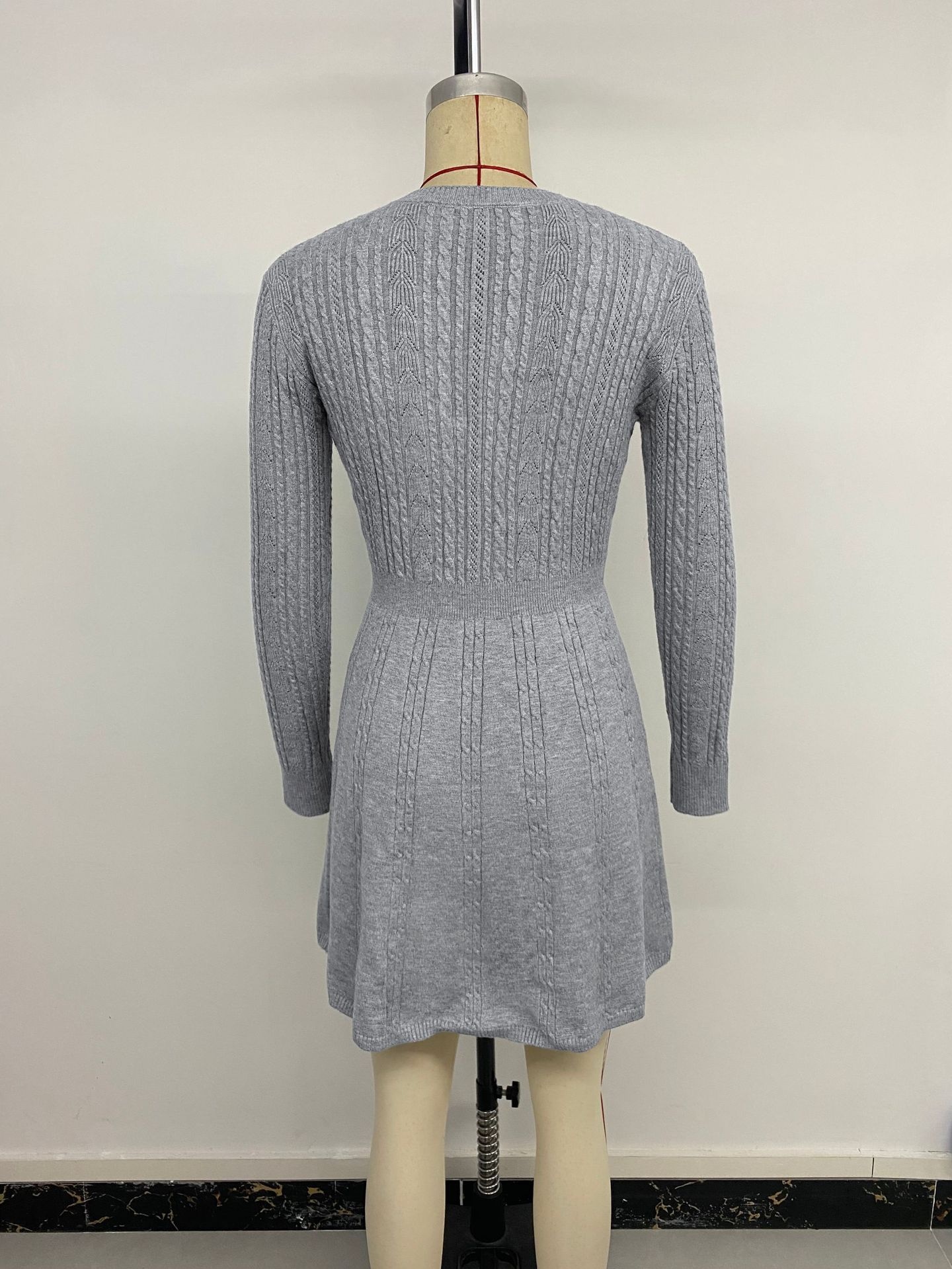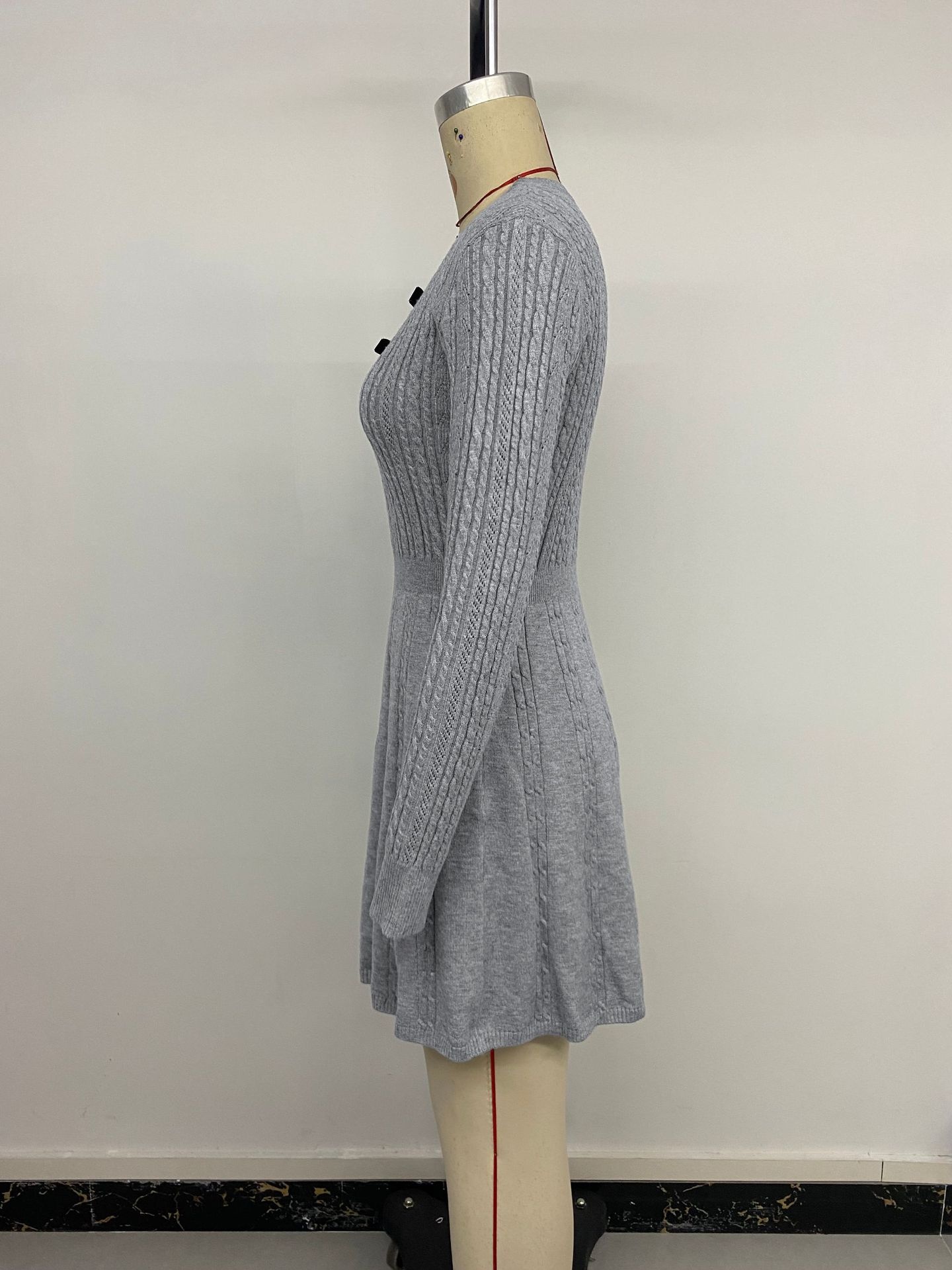 New High-end Gray Textured Knit Slim-fit Dress For Women