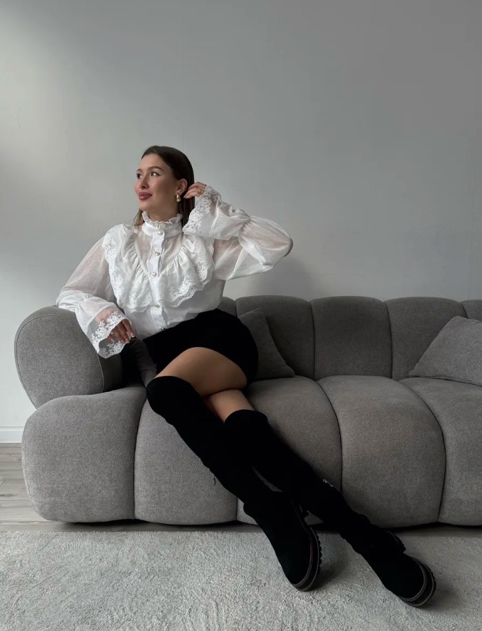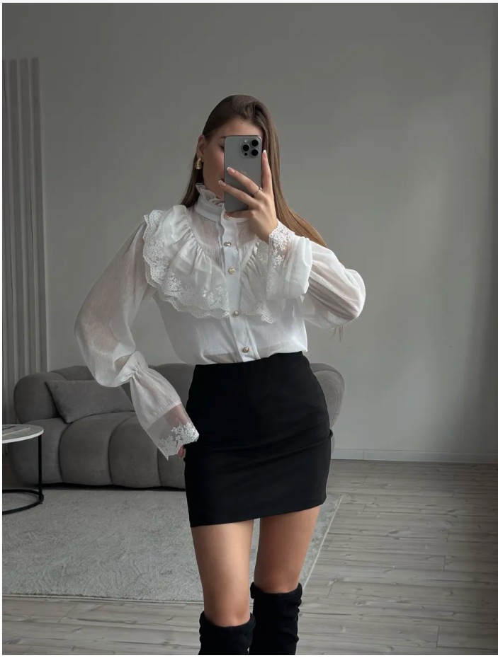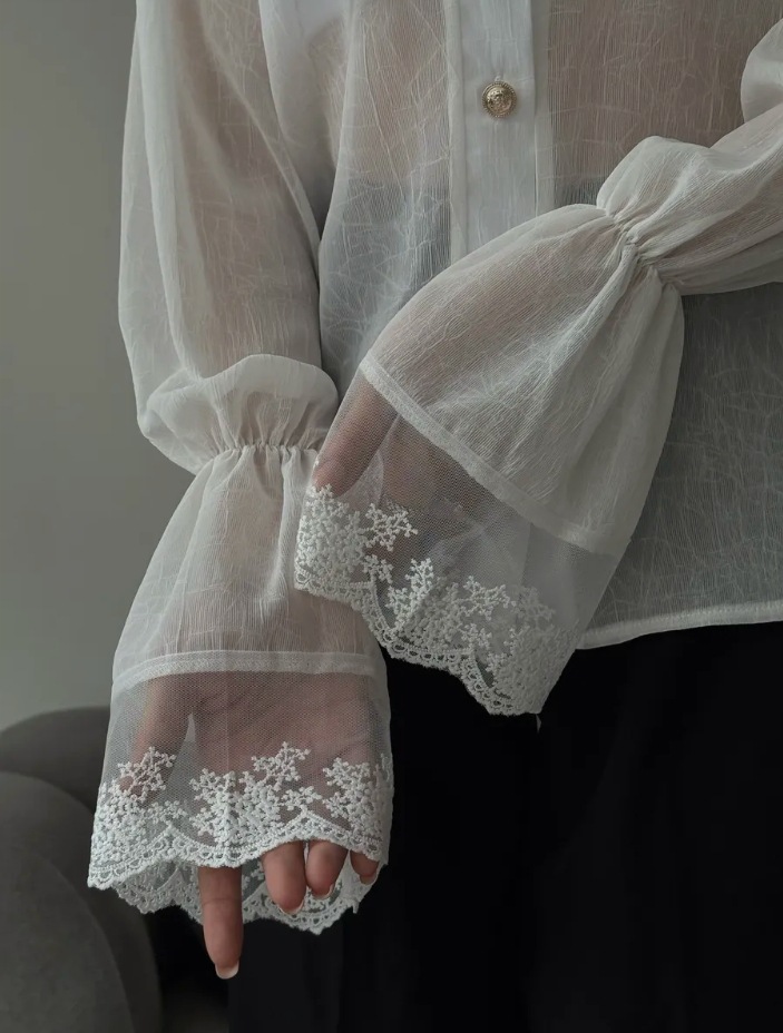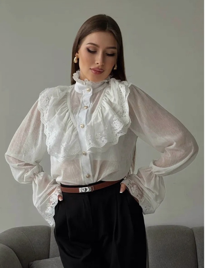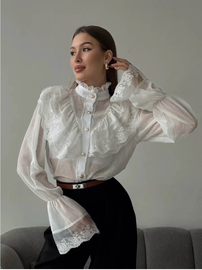 Stand-collar Chiffon Top With A Fashionable Design And Ruffled Hem