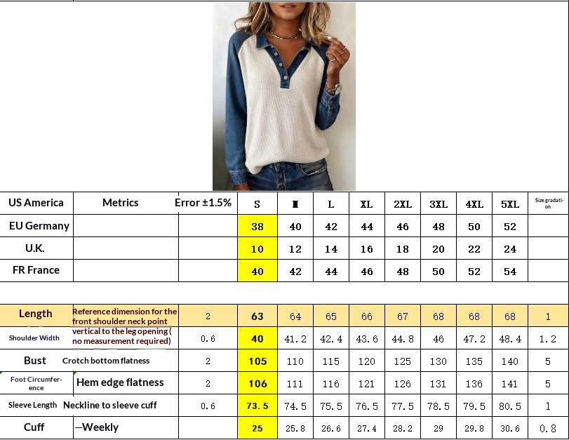 Women's Casual Contrasting-Color Waffle-Knit Patchwork Long-Sleeve Top