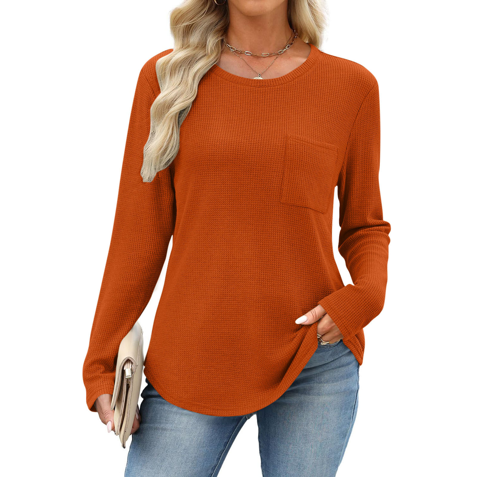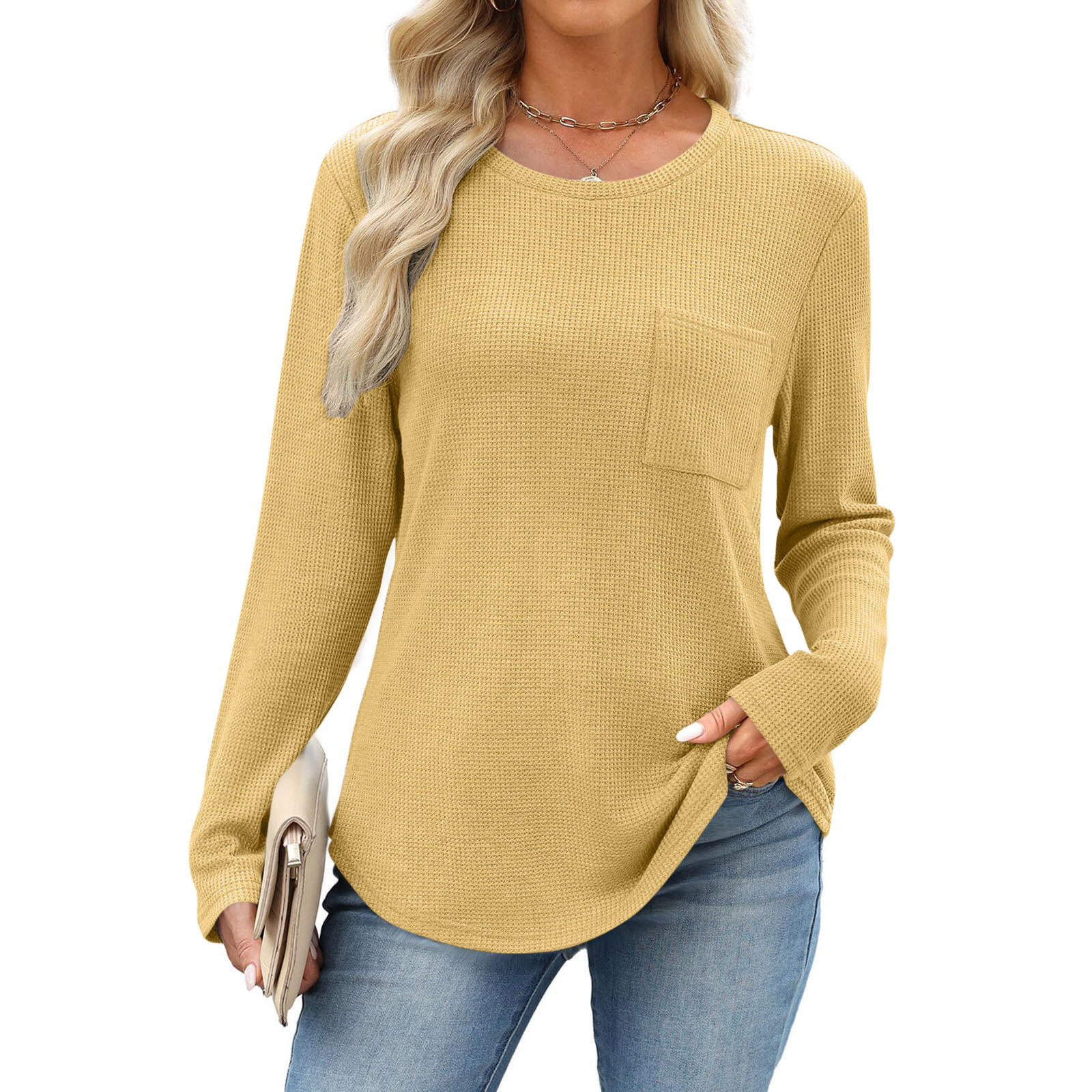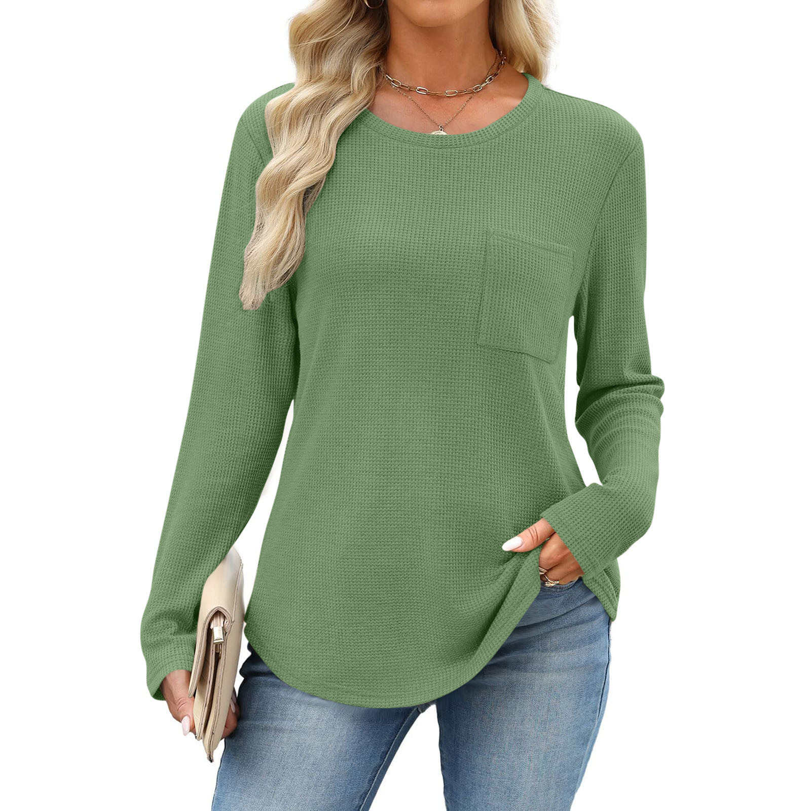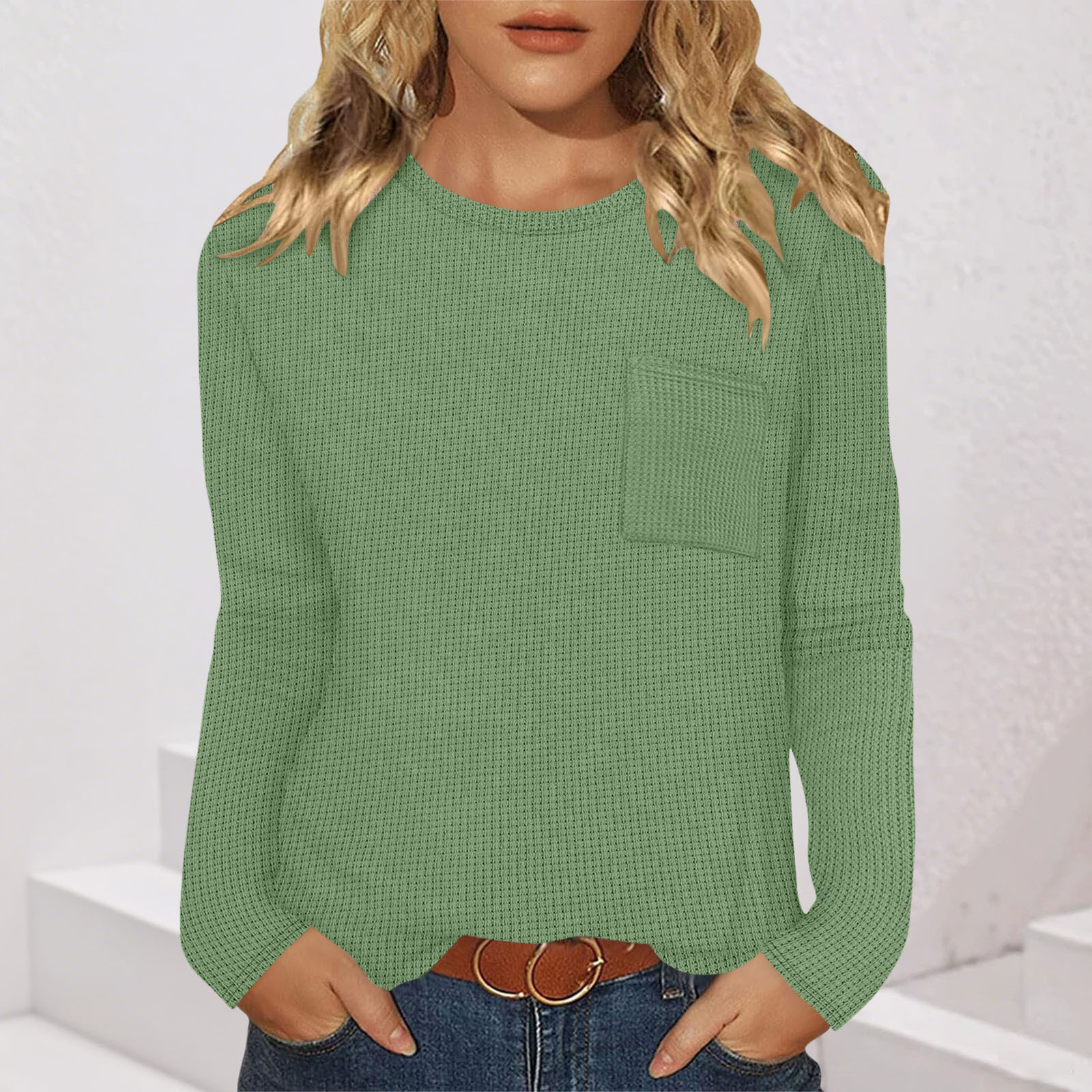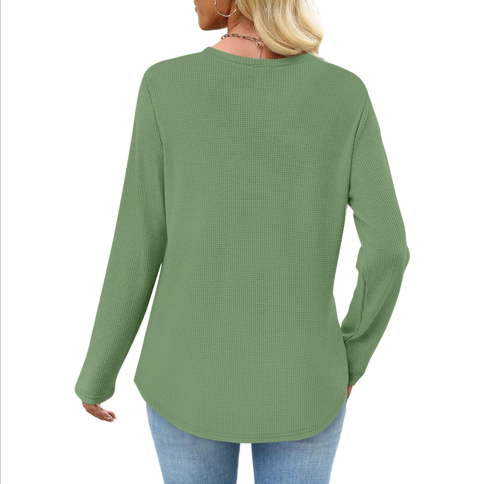 Women's Long-Sleeved Waffle Knit Top T-Shirt