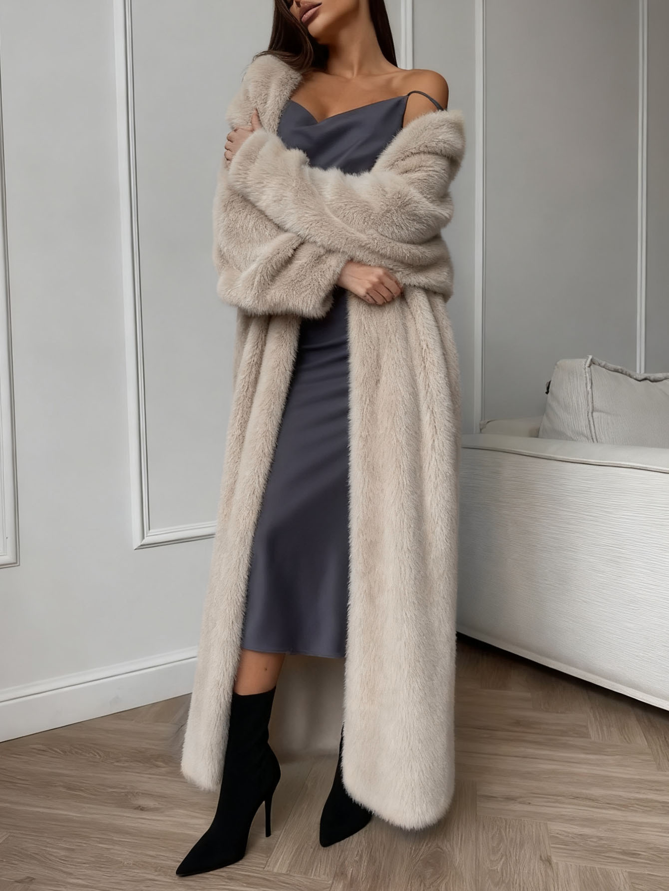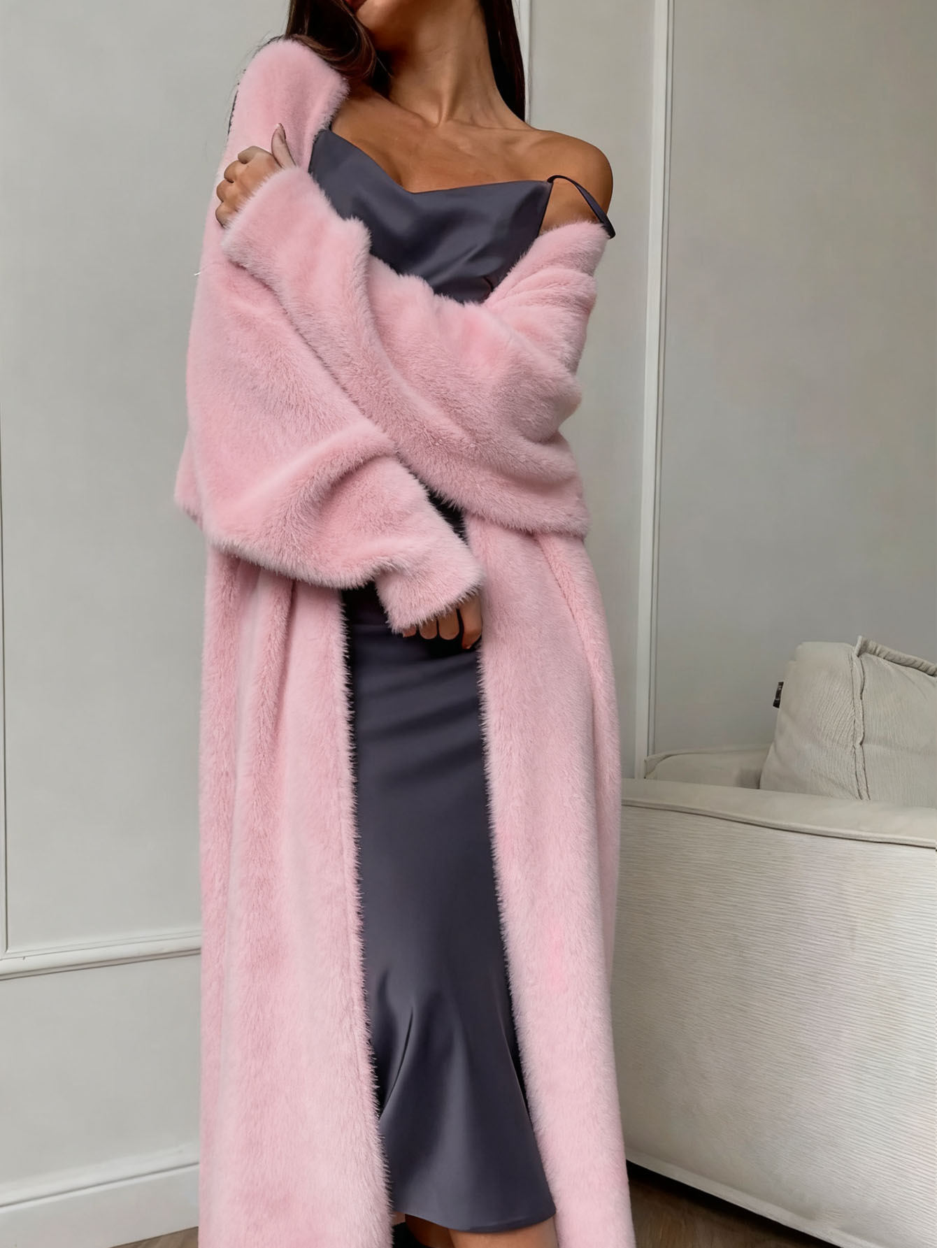 Women's Solid-Color Loose Plush Knitted Long Coat