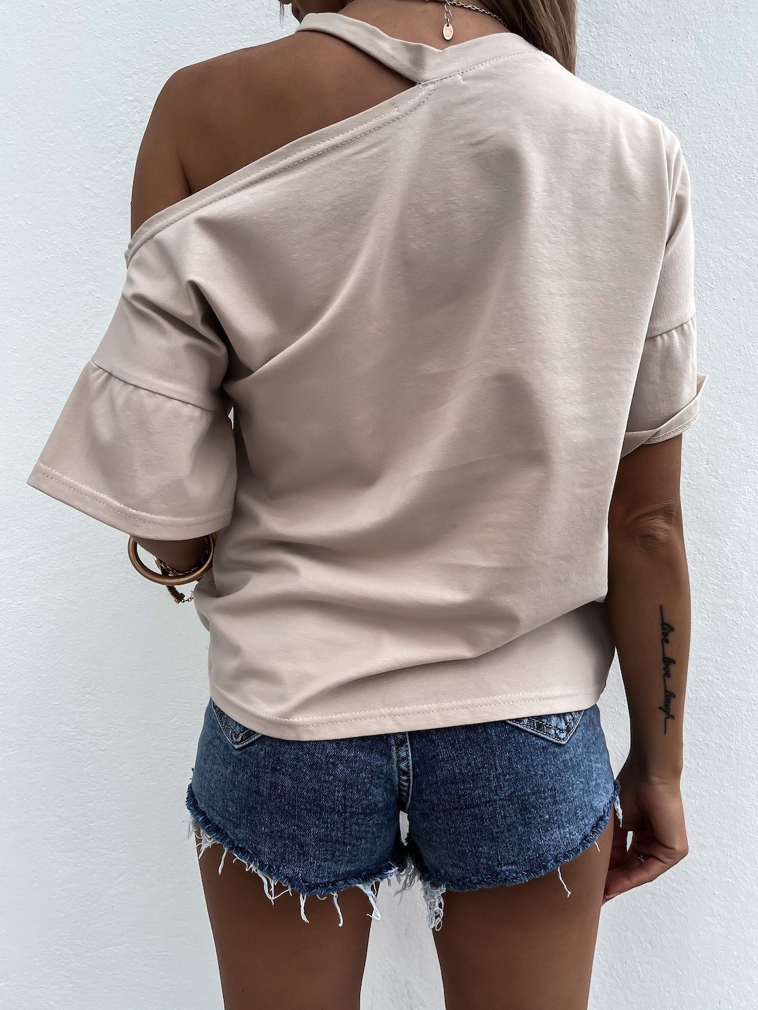 Women's Solid-color Patchwork Off-shoulder Crew-neck Top