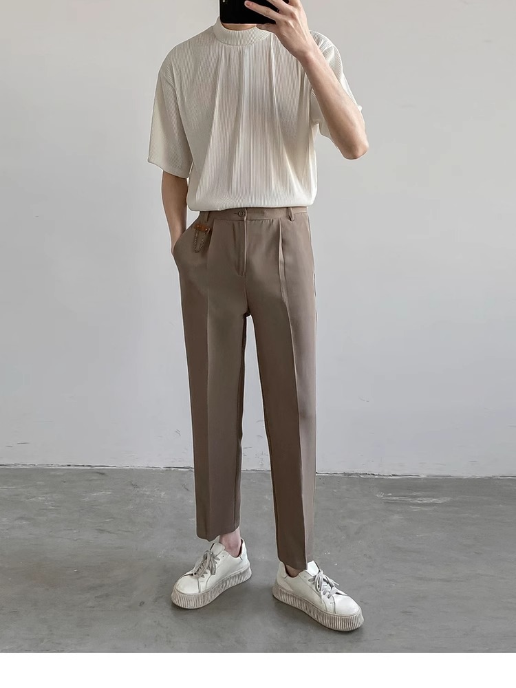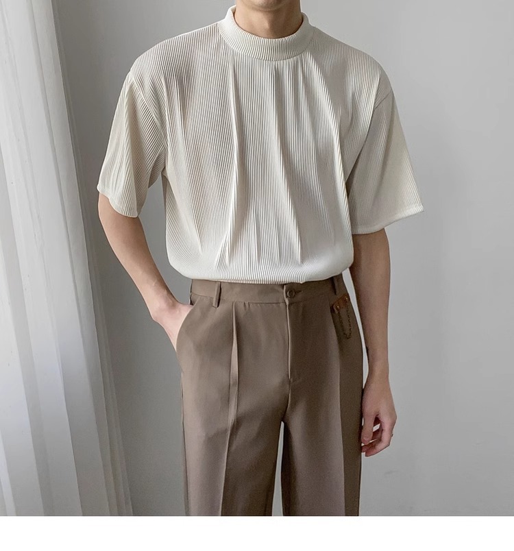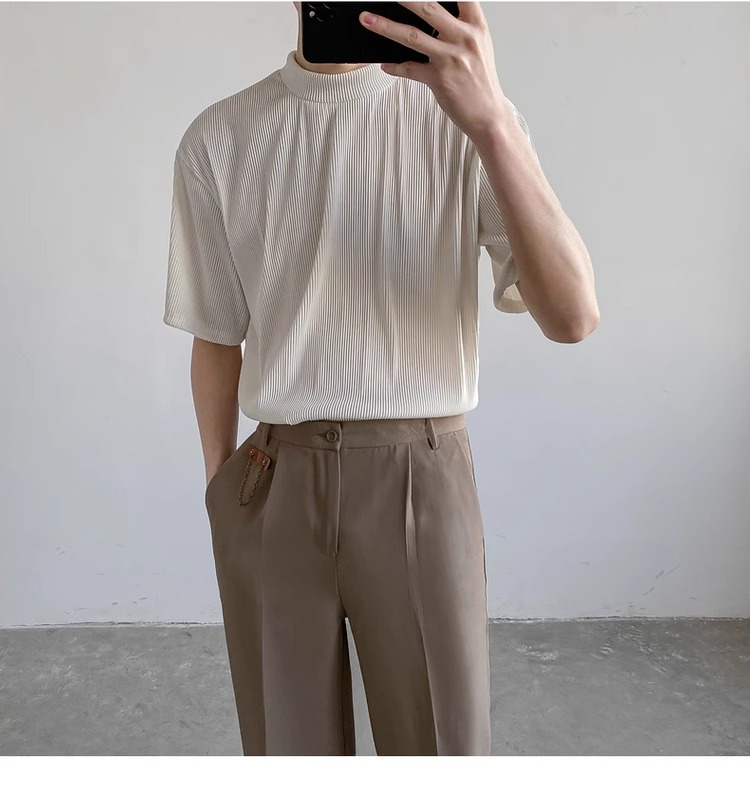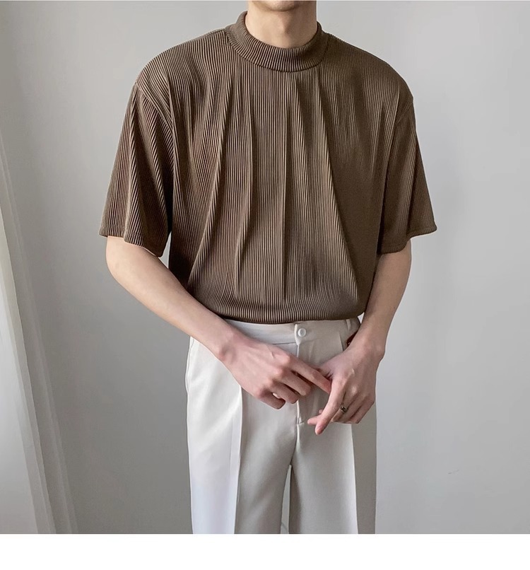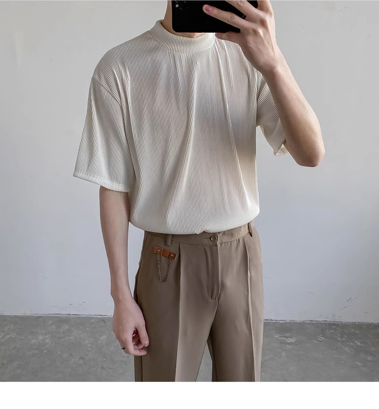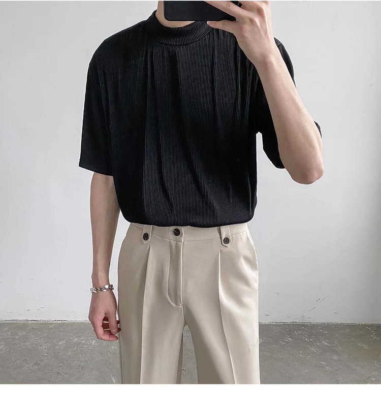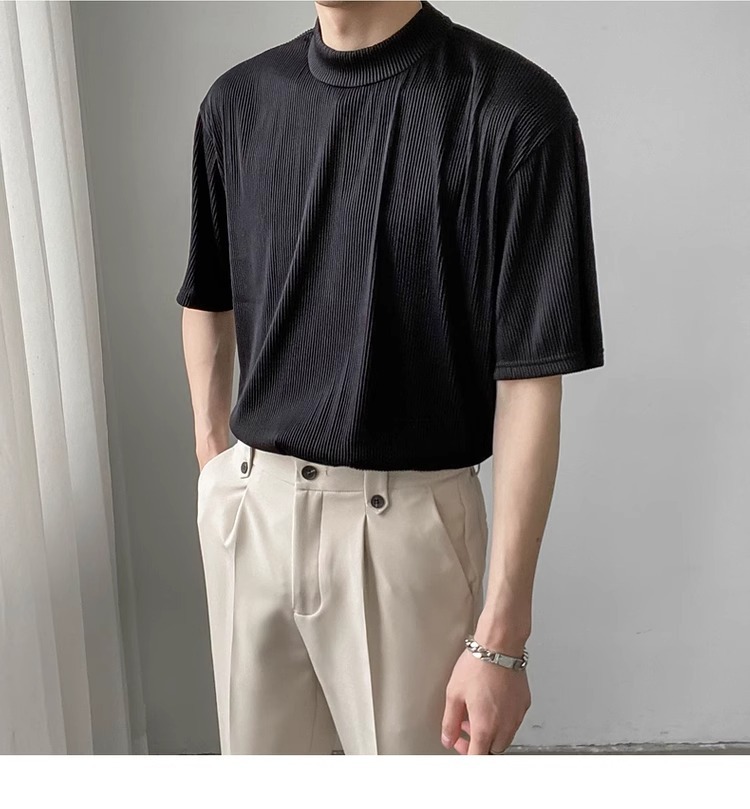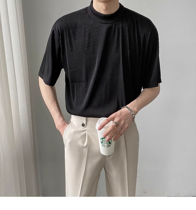 Casual Loose-fit Semi-turtleneck Short-sleeve Men's Top
