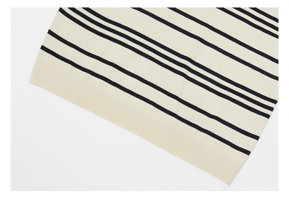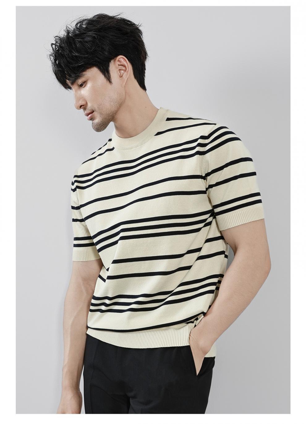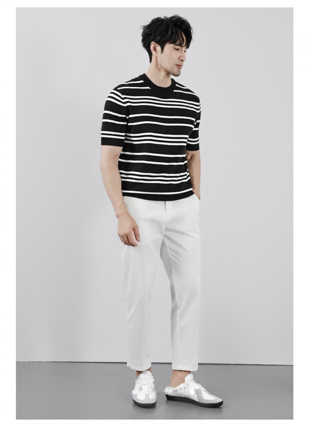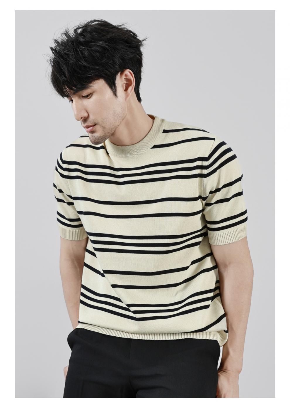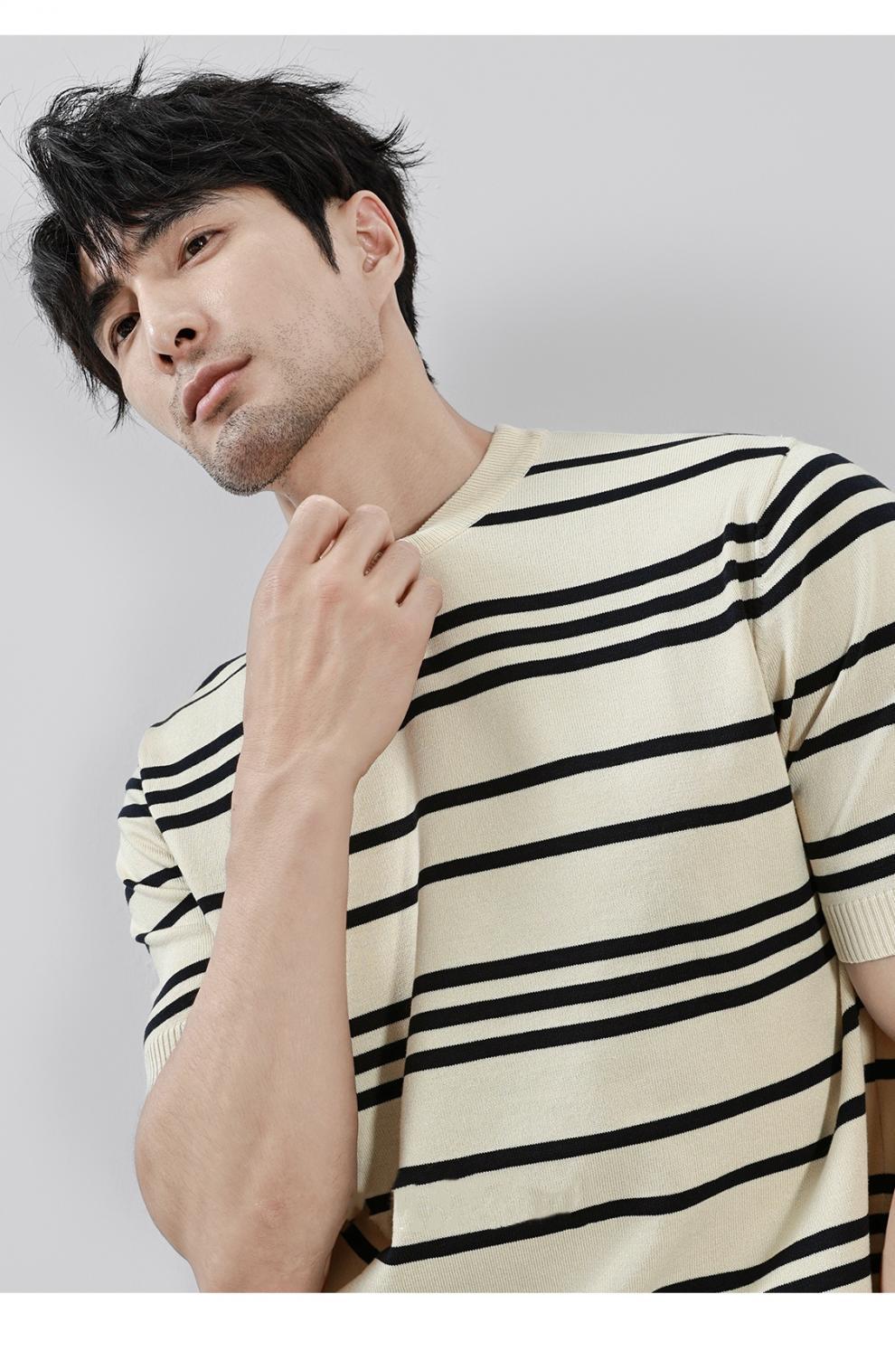 Knitted Ice Silk T-shirt Men's Short Sleeve Black And White Stripes