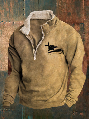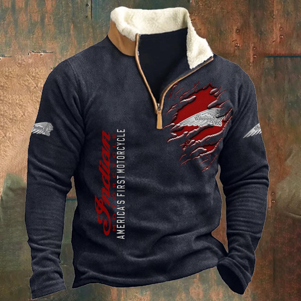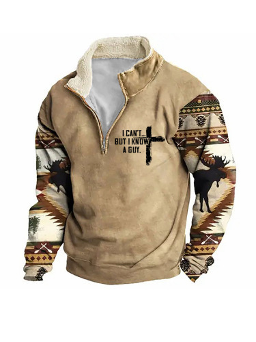Men's Fitted Top With Printed Pattern And Faux Fur Collar