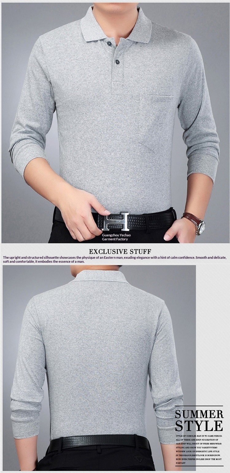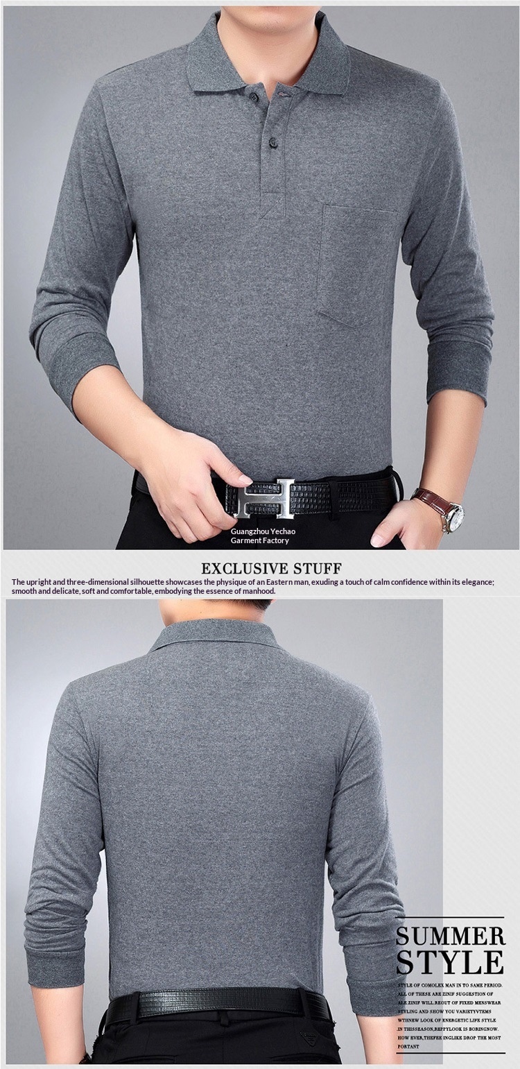 Men's Solid-color Long-sleeve Top With A Turn-down Collar And Real Pockets