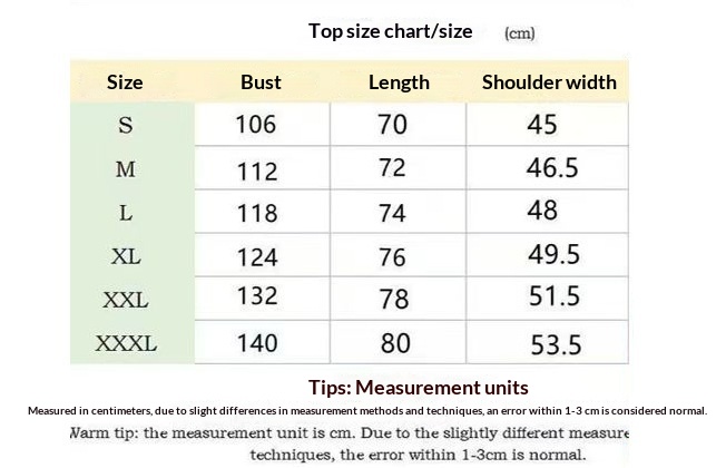 Note: 1. Asian sizes are 1 to 2 sizes smaller than European and American people. Choose the larger size if your size between two sizes. Please allow 2-3cm differences due to manual measurement. 2. Please check the size chart carefully before you buy the item, if you don't know how to choose size, please contact our customer service. 3.As you know, the different computers display colors differently, the color of the actual item may vary slightly from the following images.