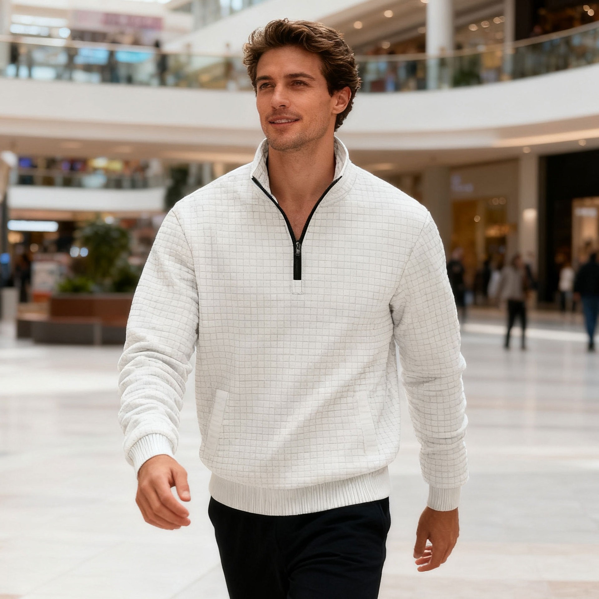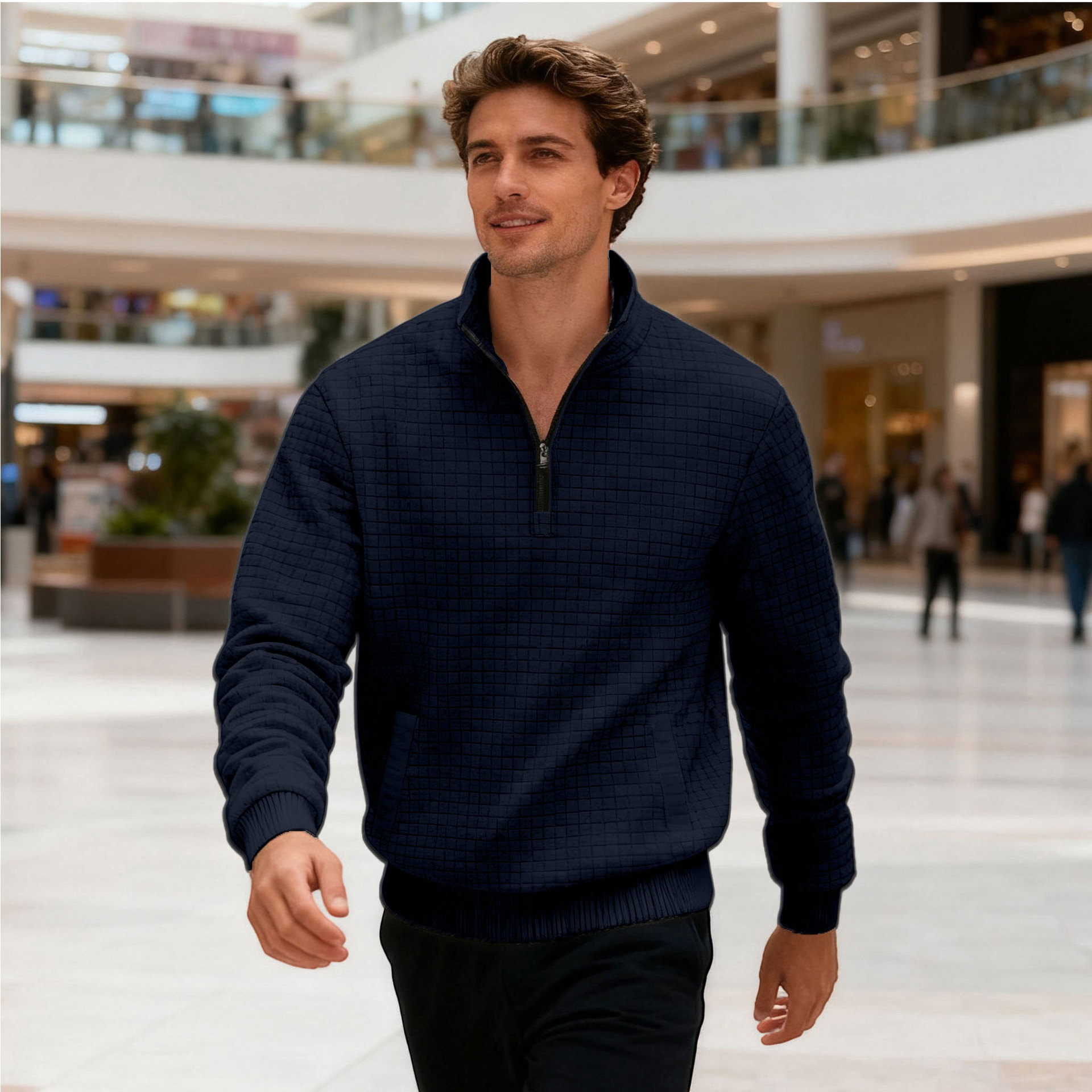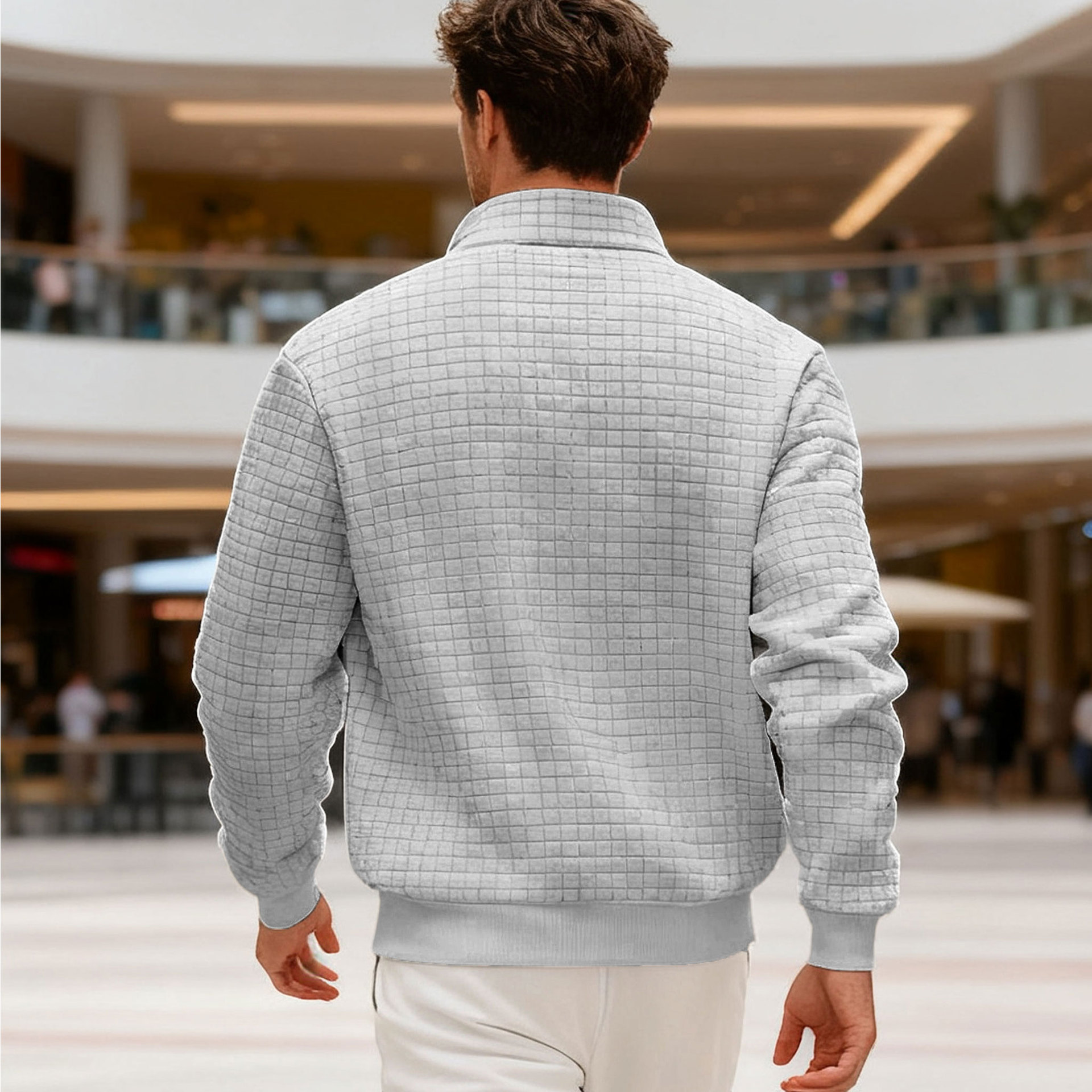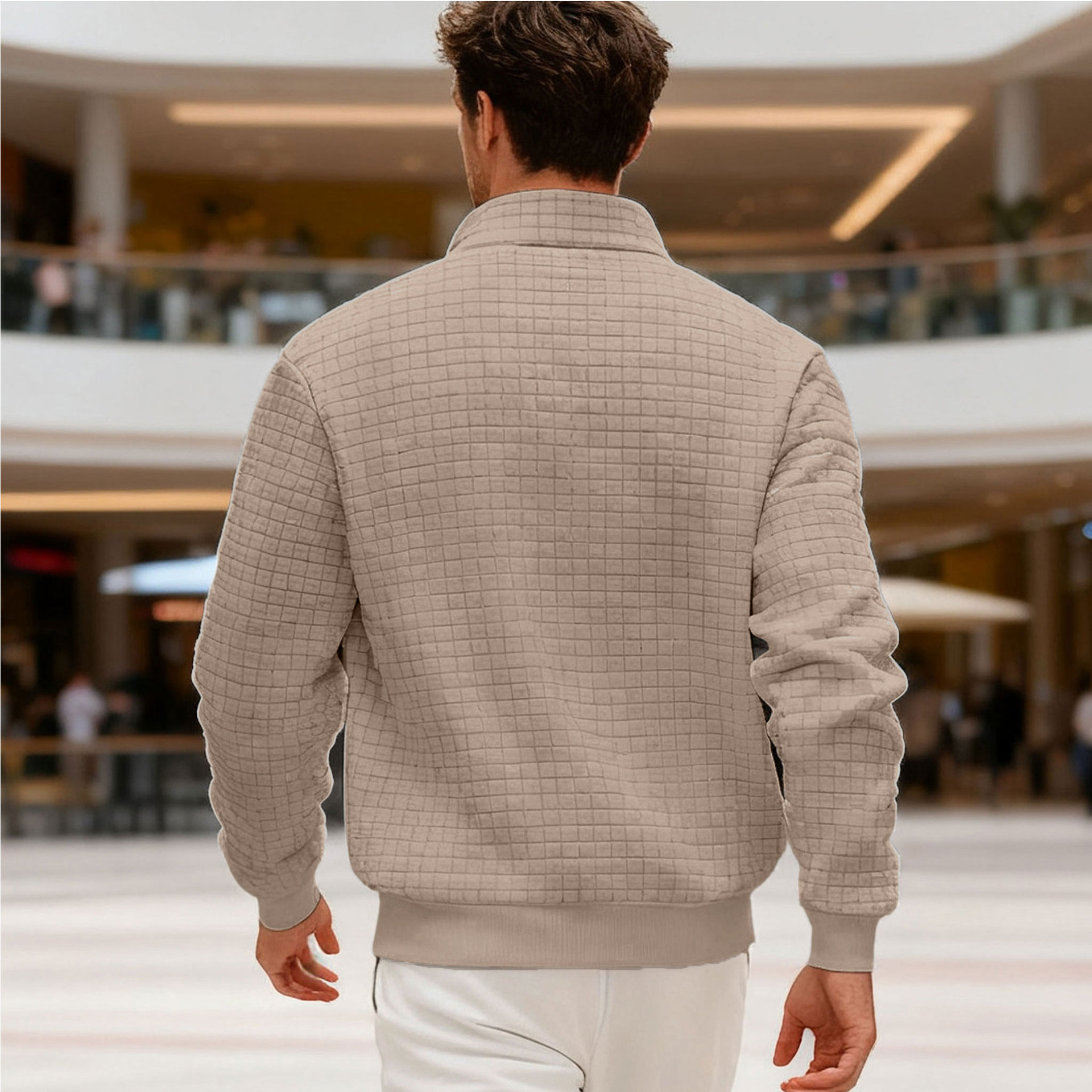 Men's Sweatshirt Autumn And Winter New Style Stand-up Collar Long Sleeve Small Check