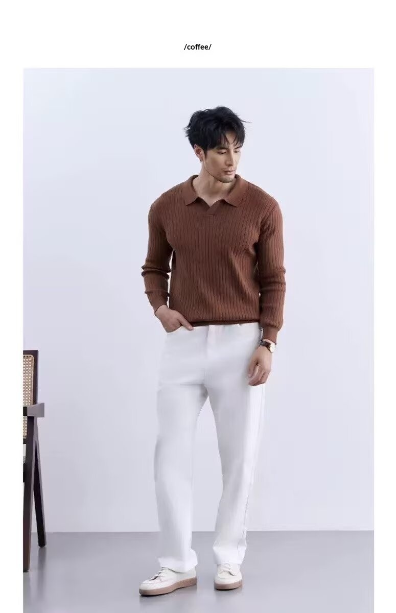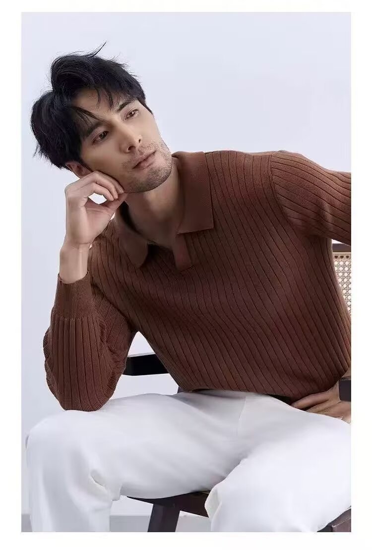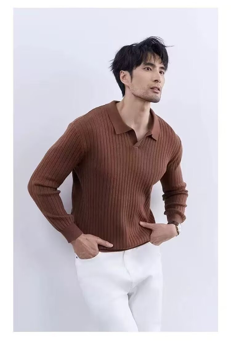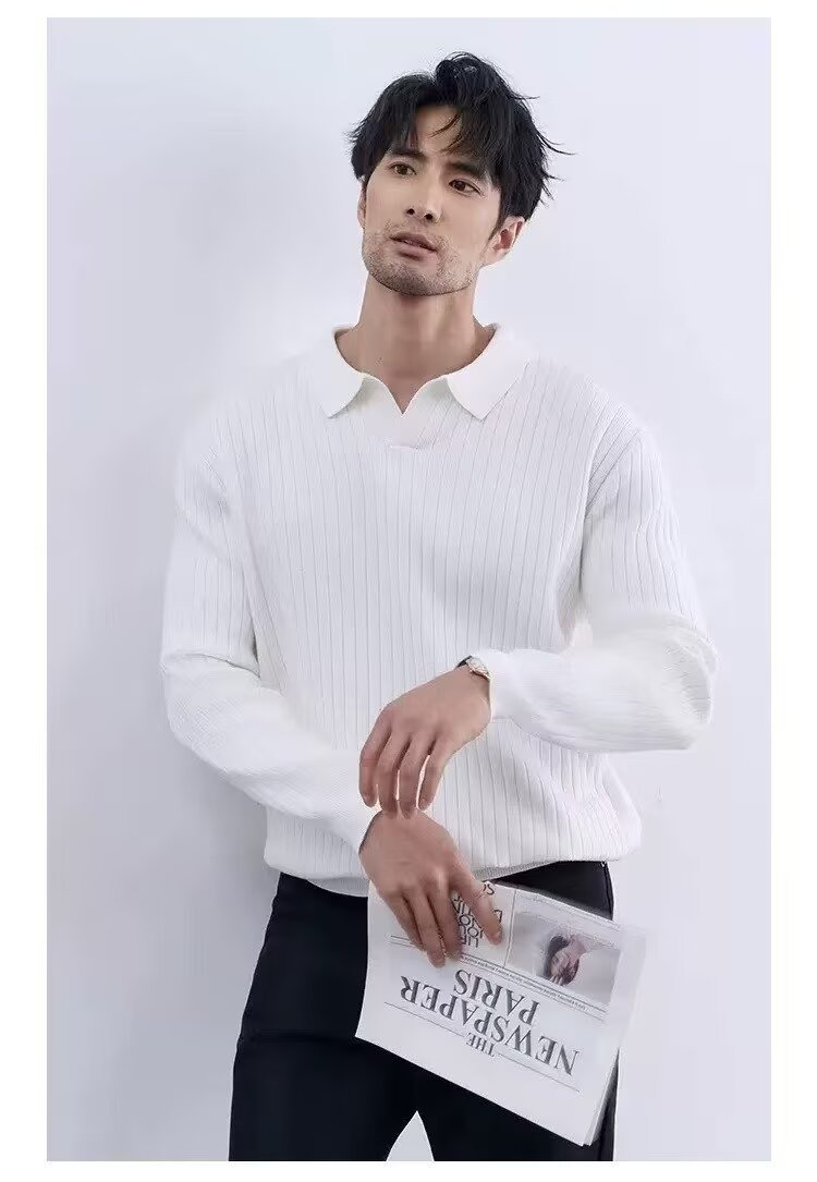Men's Turn-down Collar Sweater Long Sleeve Knitwear