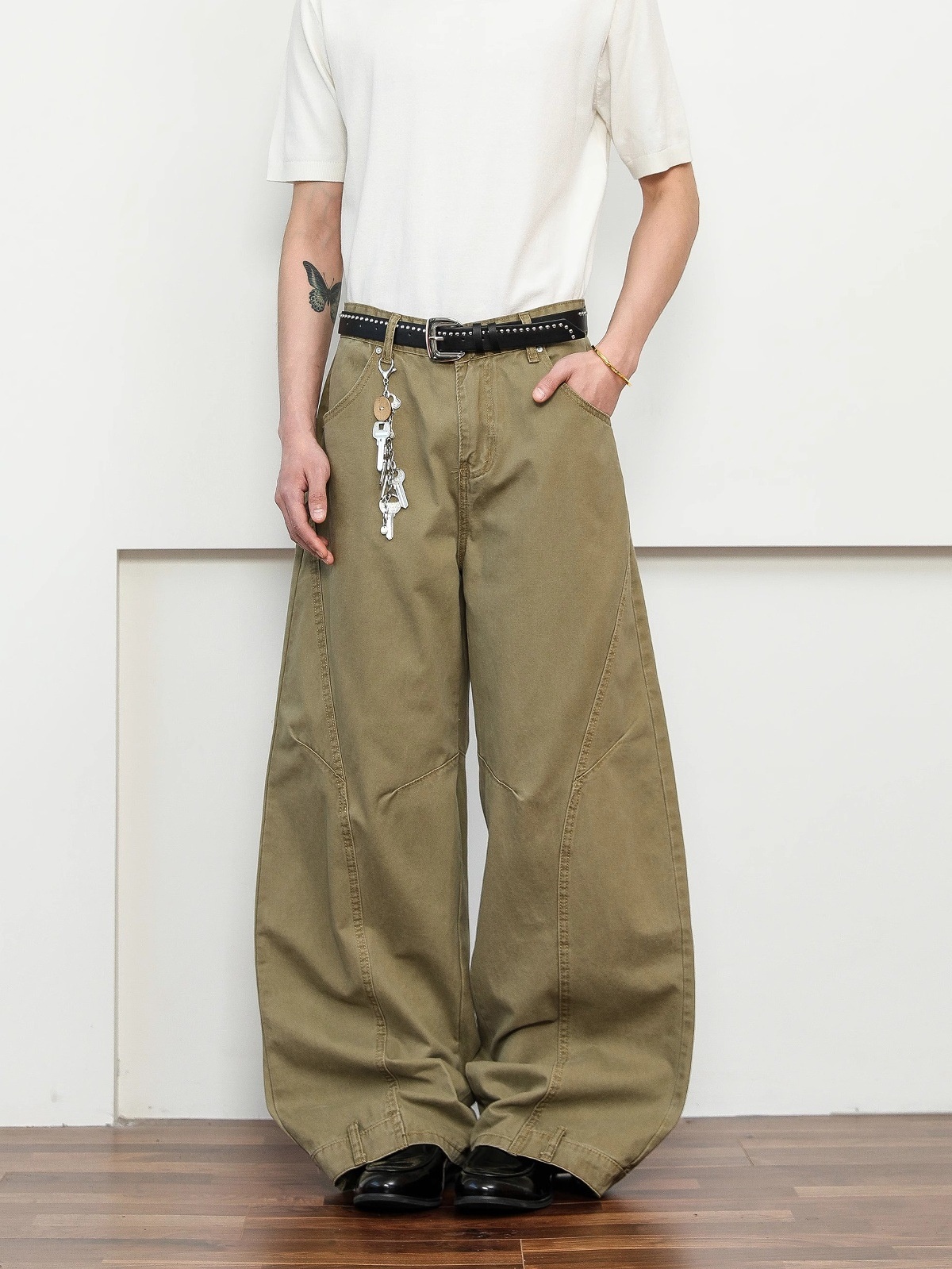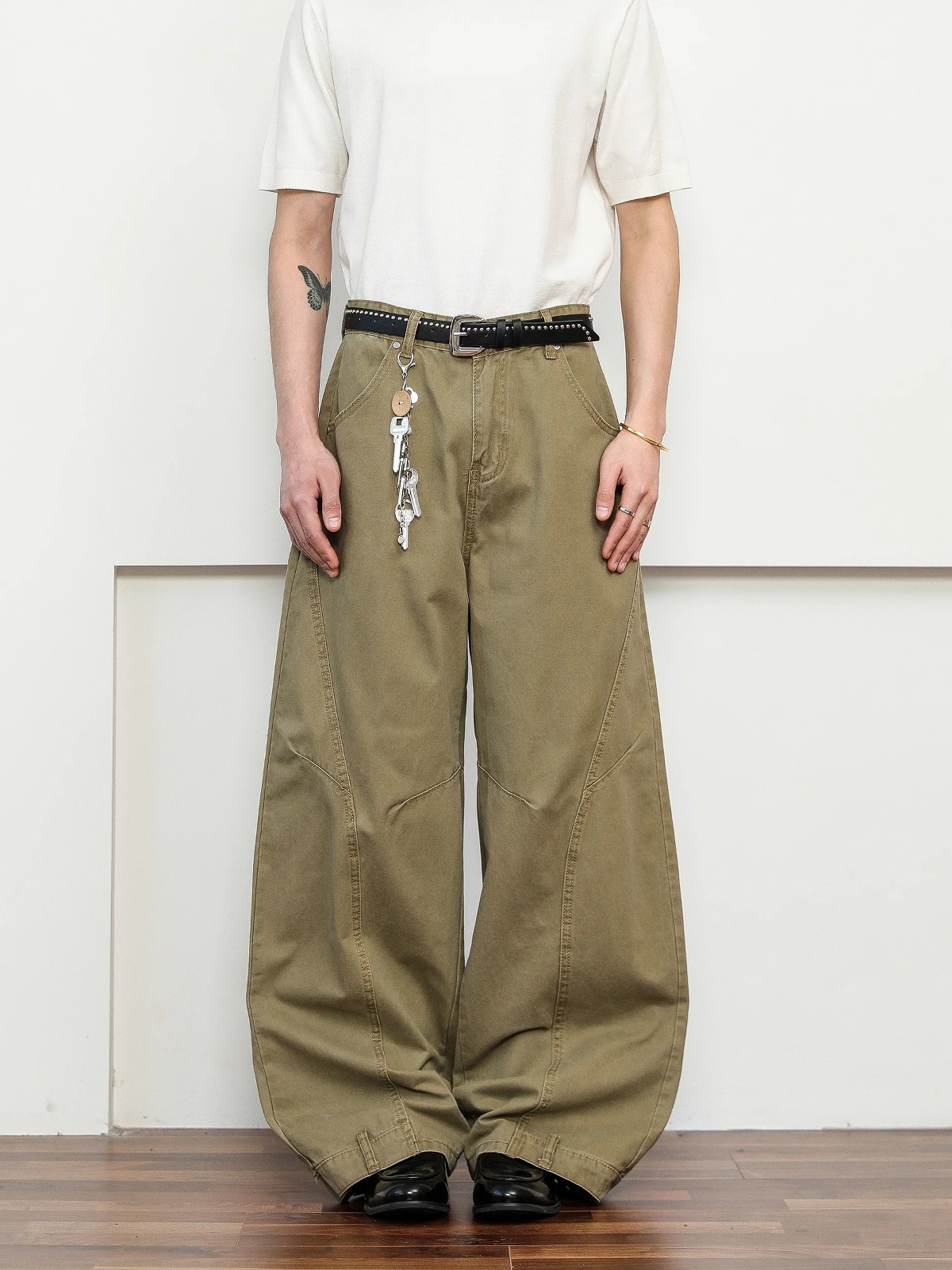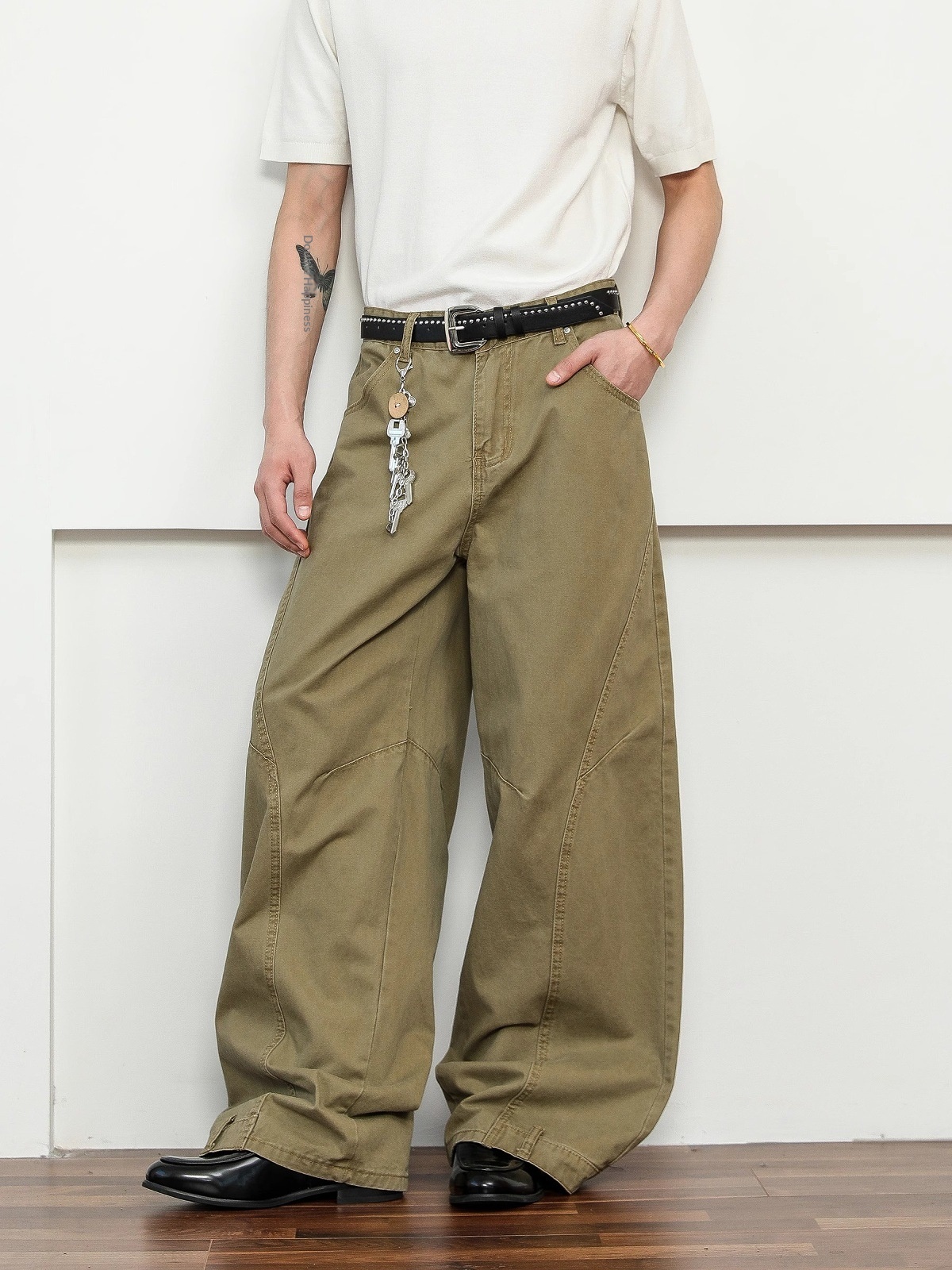 Retro Deconstruction Scimitar Men's Wide-leg High-end Khaki Pants