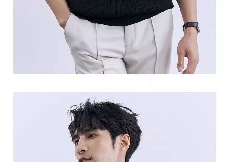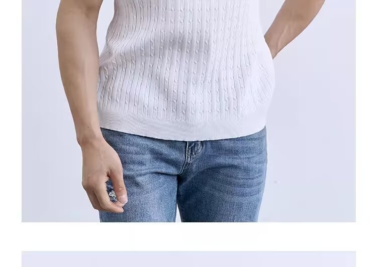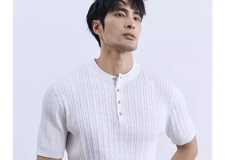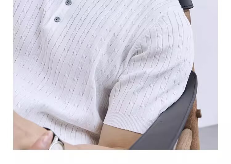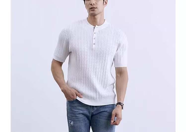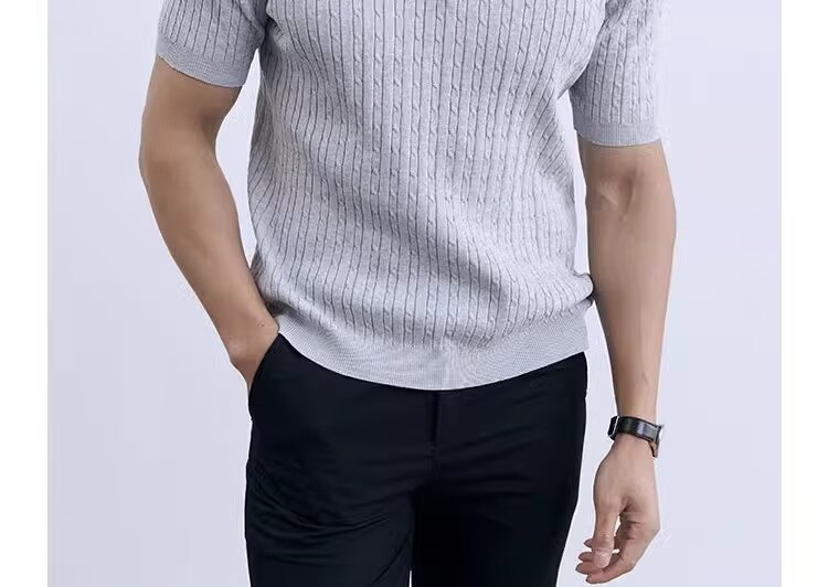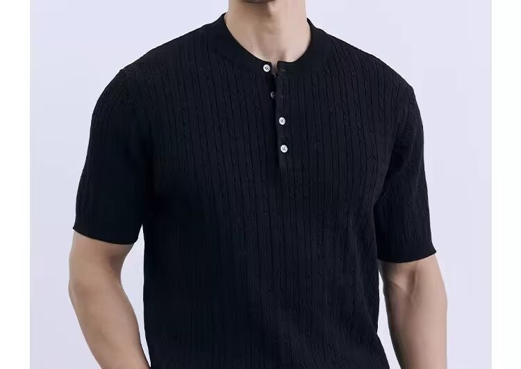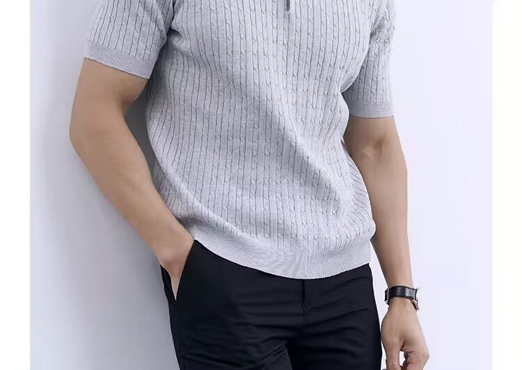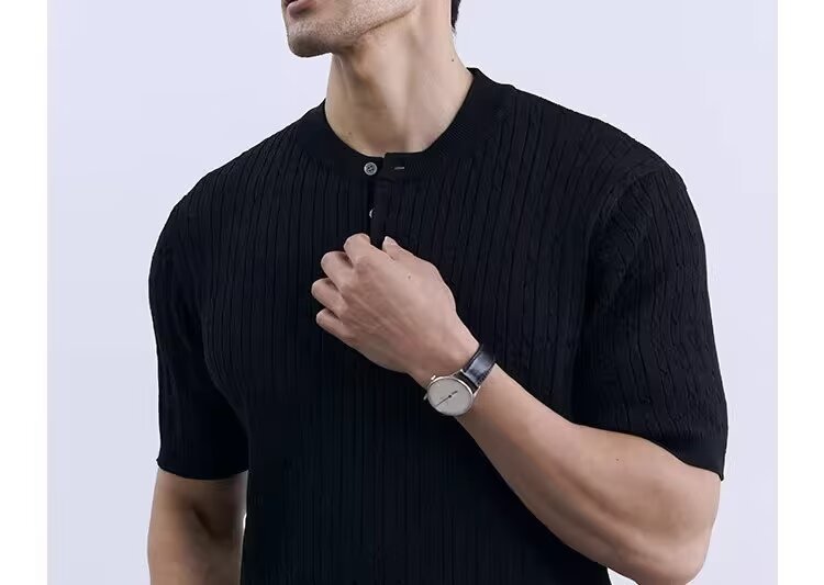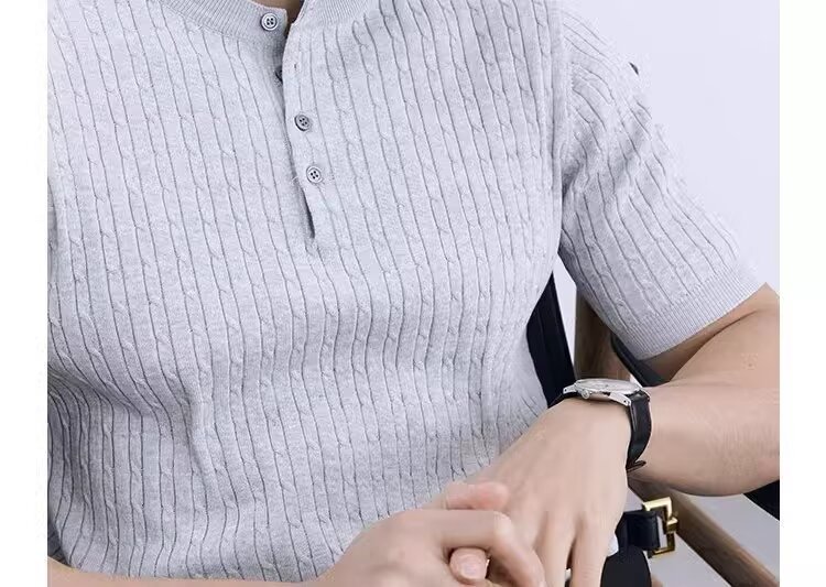 Simple And Slim-fit Round-neck High-end Casual Knit Short-sleeve Shirt For Men