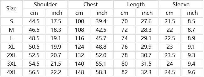 Sizes: S, M, L, XL, XXL, 3XL, 4XL